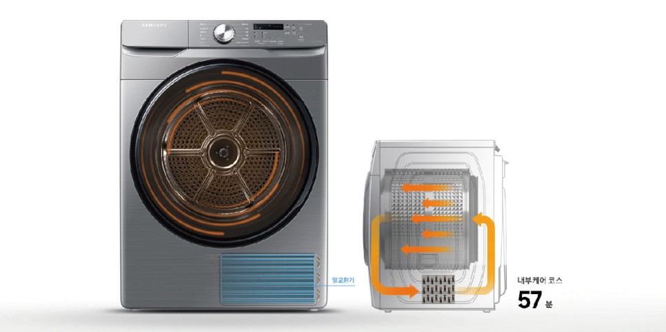 삼성 그랑데 건조기를 건조통과 뒤판이 일체형으로 결합되어 건조 시